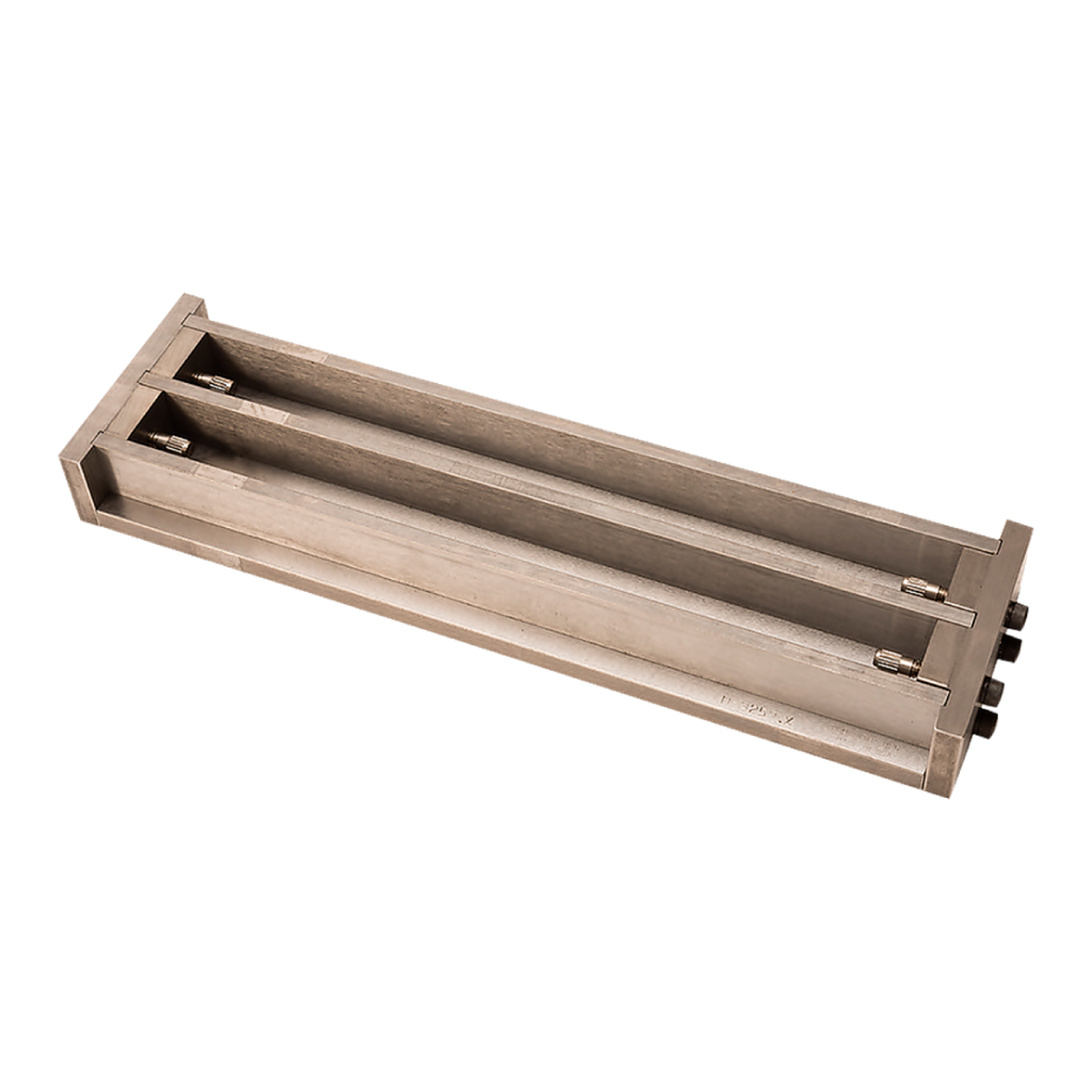 Molde doble de acero inoxidable para fundir viguetas de mortero de 1″ x 1″ x 10″ (25.4 x 25.4 x 254 mm).